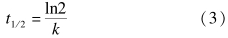 式中,ct为t时刻反应液中东莨菪内酯的质量浓度(mg/L),c0为东莨菪内酯的初始质量浓度(mg/L),k为光解速率常数(h-1),t1/2为光解半衰期(h)。
