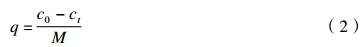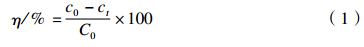 式中:η为农药降解率/%;q为复合材料吸附量/(mg/g);c0为溶液中农药的初始质量浓度/(mg/L);ct为吸附后溶液中残余农药的质量浓度/(mg/L);M为复合材料添加量/(g/L)。