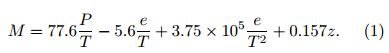 It has long been recognized that accurate predictionsof electromagnetic(EM)wave propagation in theatmosphere require a knowledge of modified refractivity(M; in unit of M)profiles(Dockery,1988), and themodified refractivity M is related to the atmospherictemperature(T; K),partial pressure of water vapor(e;hPa),atmospheric pressure(P; hPa), and the altitude(z; m)above surface(Bean and Dutton, 1968):