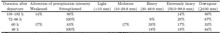 | The percentage values in the table represent the proportion of the SDPVs that induce certain intensity rainfall. | |||||||