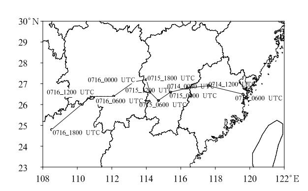 | Fig. 9. The track of tropical storm Bilis(2006)after itsl and fall. |