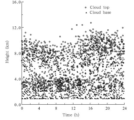 | Fig. 2 Diurnal variations of cloud top and base during 5 July-4 August 2014. |