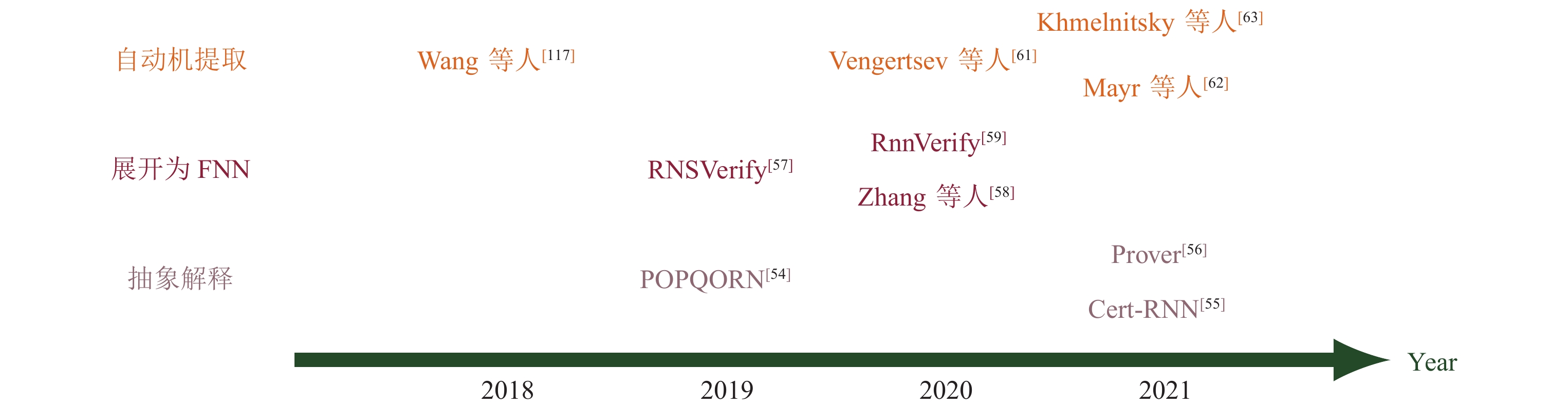 在自然语言处理和语音识别等领域, 应用最为广泛的是RNN. 由于RNN比FNN的结构更加复杂, 定义输入序列的扰动空间也更加困难, 因此关于RNN鲁棒性验证的工作目前还比较少, 且多数RNN的验证工作借鉴了FNN的验证思想. 本文将首先回顾FNN鲁棒性验证的相关内容, 分析和比较FNN和RNN验证方法之间的内部联系, 并就RNN验证面临的挑战展开讨论.