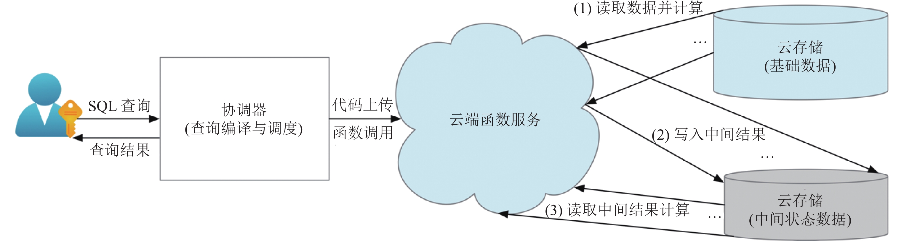(3)优势与局限. 相比于传统的MPP型数据仓库, 这类架构能够提供更高的可用性, 更好的弹性, 以及更低的成本. 其主要面临的挑战为如何减少计算层与网络层之间的网络传输. 一方面, 即使计算层与网络层之间有高速网络, 但相比于本地缓存的带宽速度还是有数量级的差距. 另一方面, 云服务的计费与扫描的数据量和传输的数据量都有关, 所以需要尽量减少数据的网络传输.