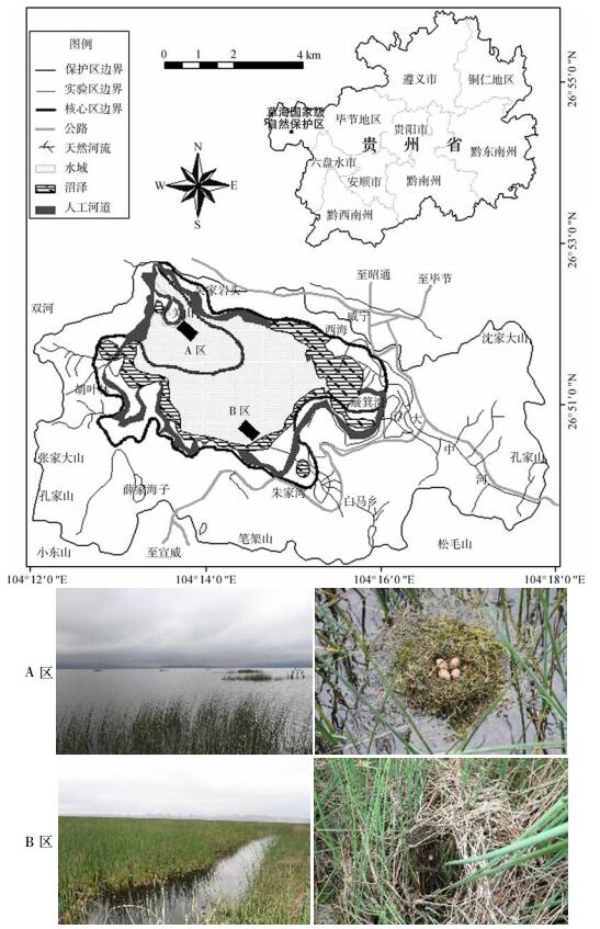 贵州草海国家级自然保护区属高寒湿地生态系统,近几年区域内建筑业和旅游业的快速发展、农事活动和生态补偿不足等问题对草海鸟类构成威胁 (周立晨等,2013)。对该区域小巢址生境选择进行研究,分析巢址生境选择的主要影响因素对该物种保护有实践意义。小(Bilal et al., 2013) 及其他一些鸟类 (刘学昌等,2009;Dinkins et al., 2016) 在不同区域甚至是同一区域小范围内的巢址选择对生境的利用有很大的差异性,研究草海小生境选择,对丰富高寒湿地生态系统鸟类巢址生境选择有理论意义。本研究以期为高寒湿地生态系统中小巢址生境选择研究提供基础资料,并为区域物种保护提供理论依据。