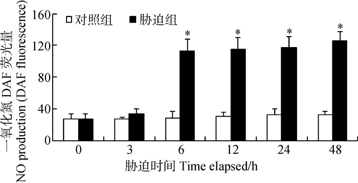 | 图 3 Cu2+胁迫对罗氏沼虾血细胞一氧化氮含量的影响 Fig. 3 Effect of Cu2+ on NO production in hemocyte of Macrobrachium rosenbergii |