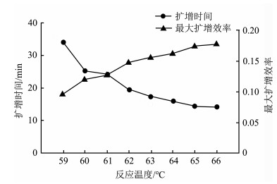 根据Bst酶最佳温度范围:60~66 ℃,设置8个温度梯度进行反应:59 ℃、60 ℃、61 ℃、62 ℃、63 ℃、64 ℃、65 ℃、66 ℃。最佳反应温度判断标准为:LAMP开始扩增的时间较早、最大扩增效率高且用时较短。