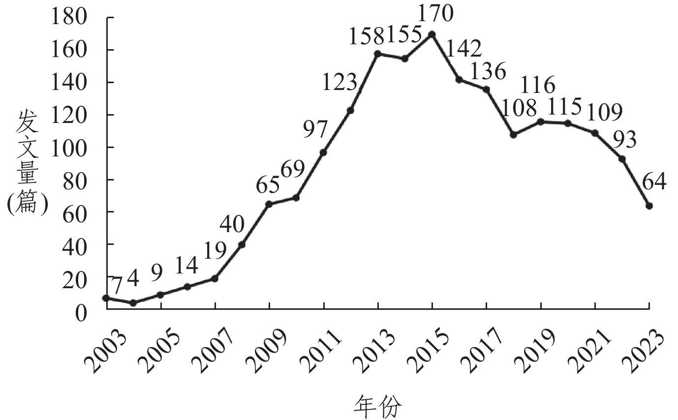 图 1 2003—2023年我国志愿者激励研究每年发表论文数 |