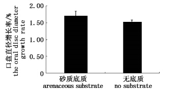 图 1 两种底质的口盘直径增长率比较 Fig. 1 The comparison of oral disc growth rates of sea anemone in two different substrates |
