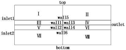 本文求解属于定常问题。利用FLUENT软件进行模拟仿真时,选用基于压力的分离式求解器[9, 10],数值方法直接求解 2D 不可压粘性流体的(Standard k-ε)方程。