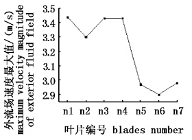 图 6 不同形状叶片外流场速度最大值图 Fig. 6 Maximum velocity magnitude of different blades' exterior flow field |