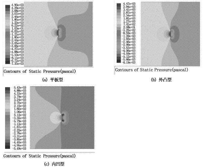 图 7 不同形状叶片外流场压力分布 Fig. 7 Contours of static pressure of different blades' exterior flow field |