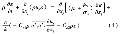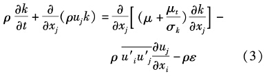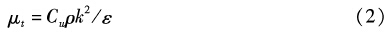 上述公式中的经验常数分别为:Cμ=0.09;Cε1=1.44;Cε2=1.92;σk=1.0;σε=1.3。