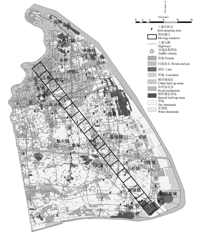 本研究意在将景观格局指数与其他的景观变量包括道路密度、人口和其他社会经济变量结合起来,用于解释上海市城乡梯度上的土壤Pb浓度分布格局。