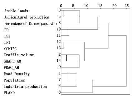 图4 景观变量的层次聚类分析 Fig.4 The hierarchical cluster analysis of the landscape variables |