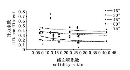 图10 线面积系数与升力系数的关系 Fig.10 The relationship between lift coefficient and solidity ratio |
