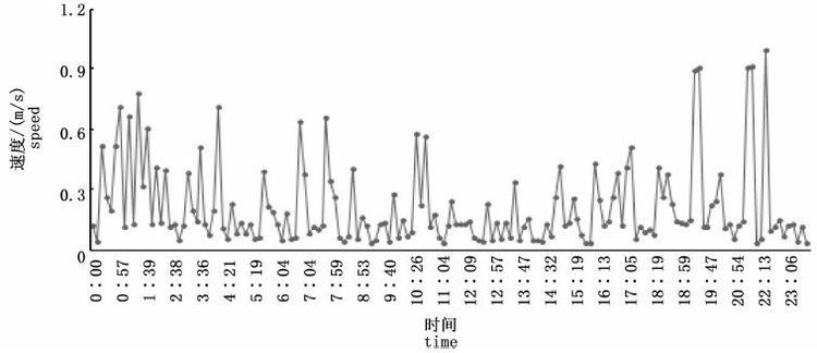 由连续5 d的垂直与水平数据得出,花尾胡椒鲷在11月8日活动规律性较明显,因此选取当日数据对其进行垂直方向的平均游泳速度计算分析,图5为花尾胡椒鲷一天内的平均游泳速度分布图。