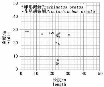 图6 花尾胡椒鲷与卵形鲳鲹的水平分布 Fig.6 Horizontal distribution of Plectorhinchus cinctu and Trachinotus ovatus |