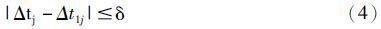 由于实际测量时超声波标志具有一定深度,因此Δt1j是斜距离时间差,而Δtj是Δt1j在xy平面上的投影。所以可以使用最小二乘法来计算推定P1(xp1,yp1)。具体的方法是先给出Δtj和Δt1j的差值满足小于等于给定值δ条件,