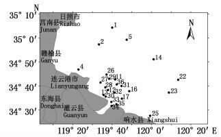 图 1 海州湾南部连云港海域调查站点图