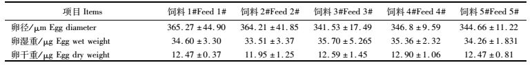 1.5 卵径、单卵湿重和干重测定每个饲料组取7~9只胚胎发育处于囊胚期的抱卵蟹,随机取部分胚胎在显微镜下用目测微尺测量卵径(精确到10 μm),每只抱卵蟹重复测量50个卵。