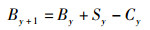 式中:m为形状参数,By为y年的生物量,Sy为y年的剩余产量,K为承载能力,r为内禀增长率, Cy为y年的总渔获量。当m为2时,式(2)为Schaefer模型;当m趋于1时,式(2)为Fox模型[8-9]。