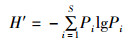 式中:S为样品中的种类总数,N为样品中所有种类的总个体数,Pi为第i个物种的个体数与样品中的总个体数的比值。