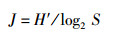 物种均匀度指数(J)采用Pielou的计算公式: