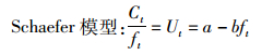 1.2 剩余产量模型由Schaefer模型和Fox模型得出渔获量、捕捞努力量和CPUE的关系式如下: