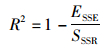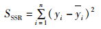 式中:SSSR为离差平方和(total sum of squared residual,SSR),为原始数据和其均值之差的平方和。公式如下: