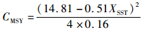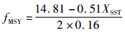 式中:CMSY为最大持续产量值MSY;CMSY和fMSY会随着SST的变化而进行变化,因而可以为相关渔业管理部门调整渔业管理措施提供一定的借鉴。