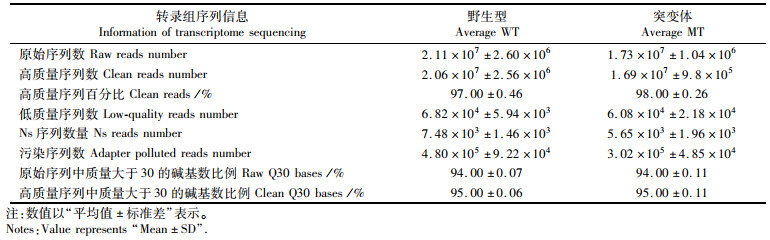 表 3 野生型和sst1-/- 突变体转录组序列信息 Tab.3 Information of transcriptome sequencing of wild-type and sst1-/- mutant |
