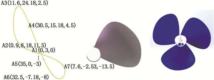 图 2 螺旋桨叶片边缘三维曲线及叶片填充模型 Fig. 2 Three-dimensional curve of the propeller blade edge |