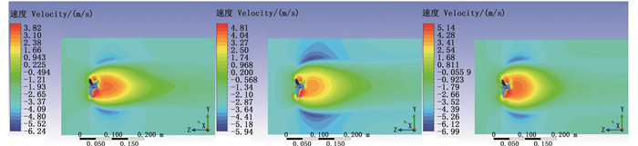 图 6 螺旋桨Dp=0.07 m纵向剖面轴向射流速度云图 Fig. 6 Axial jet velocity cloud of longitudinal section of propeller Dp = 0.07 m |