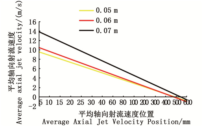 式中:Vmax为最大轴向射流速度,m/s;x为距初始流出平面的轴向距离,m。