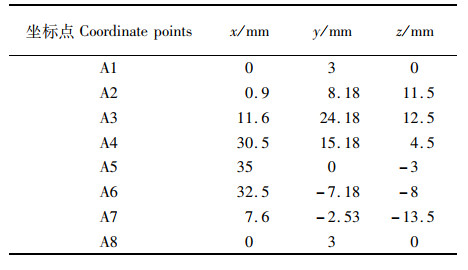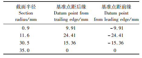 表 3 螺旋桨直径(0.07 m)叶片边缘点三维坐标 Tab.3 Three-dimensional coordinates of blade edge points of propeller diameter (0.07 m) |