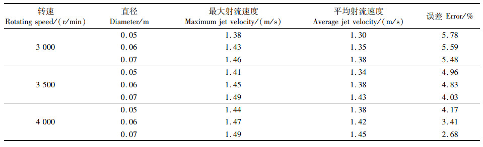 表 5 最大轴向射流速度值与平均轴向射流速度值误差 Tab.5 Error between the maximum axial jet velocity value and the average axial jet velocity value |