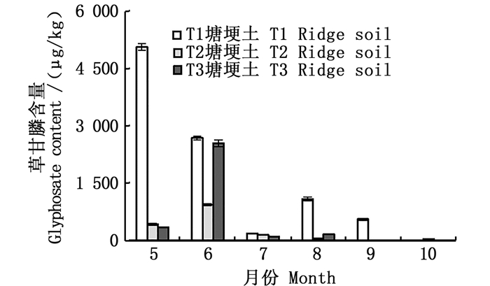 图 3 养殖塘塘埂土中草甘膦的含量 Fig. 3 The content of glyphosate in pond ridge soil |