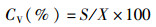 式中:CV为变异系数;S为某一性状的标准差;X为某一性状的平均值。
