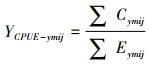 式中: ∑Cymij为一个渔区内的总渔获量, t; ∑Eymij为一个渔区内的总捕捞努力量, 网; y为年份; m为月份; i为经度; j为纬度[14]。