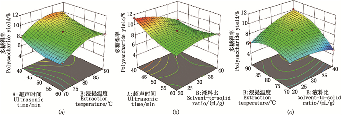 图 2 各因素相互作用对海马多糖得率影响 Fig. 2 Interactive effects of various factors on polysaccharide yield |