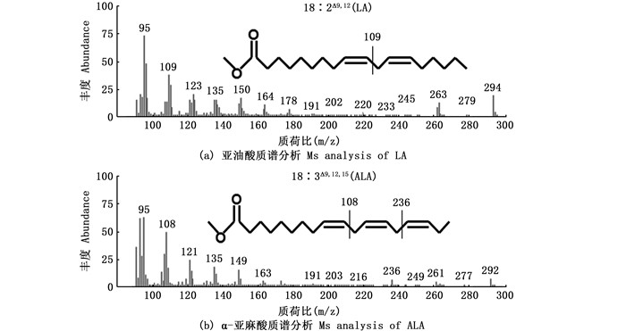 图 5 LA和ALA的MS图谱 Fig. 5 MS profiles of LA and ALA |