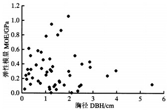 | 项目Item | 胸径DBH/cm | 弹性模量MOE/GPa |