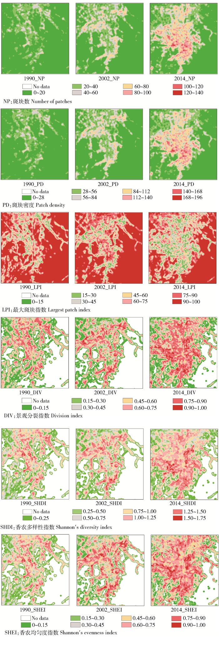 图 3 1990—2014年乌鲁木齐市建成区景观指数密度空间分布图 Figure 3 Spatial distribution map of landscape metrics density in Urumqi city during 1990—2014 |