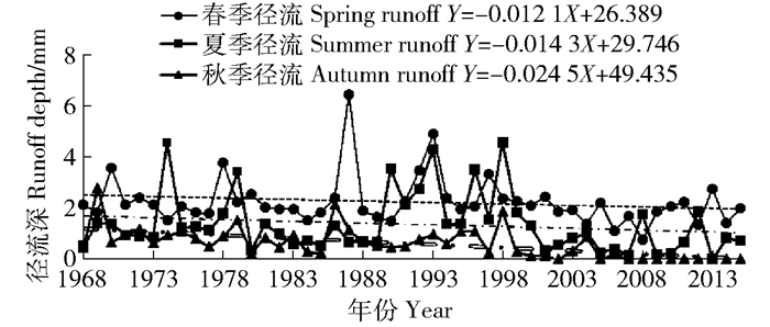 图 4 锡林河流域春、夏、秋季径流深的变化趋势 Fig. 4 Runoff depth trend of spring, summer, and autumn in the Xilin River Basin |