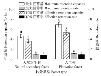 2) 人工林枯落物层将具有更高的水文功能效应,土壤水文功能效应则天然次生林更佳。