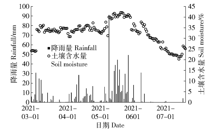 图 1 降雨量及土壤含水量动态变化 Fig. 1 Dynamic changes of rainfall and soil moisture |