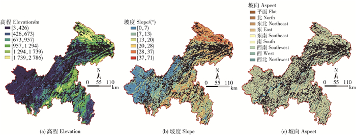 图 2 重庆市地形因子 Fig. 2 Topographic factors of Chongqing city |
