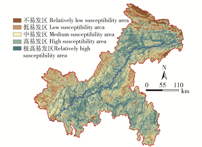 图 7 重庆市滑坡灾害易发性分区 Fig. 7 Landslide susceptibility mapping of Chongqing city |