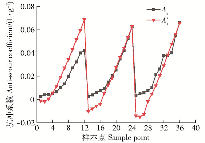 As为边坡模型抗冲系数实测值;As′为抗冲系数拟合值。 As is the measured anti-scour coefficient of slope model; As′ is the fitting value of the anti-scour coefficient. 图 7 结果对比 Fig. 7 Comparison of results |